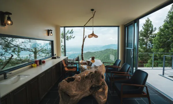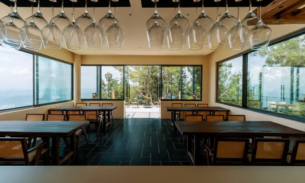 Twenty panoramic guest rooms and ten secluded forest chalets are scattered along the ridge. Every window frames a living painting: at dawn, rolling seas of cloud drift within arm’s reach; at night, the Milky Way spills across the sky. Each chalet offers utter privacy—open the door and step straight into primeval woodland, lulled to sleep by birdsong and crickets.