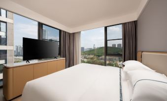 酒店位置很便利,離博物館、萬象城、奧體中心近,服務人員態度熱情主動,酒店及房間環境衞生很好,電梯刷房卡直達樓層,設施齊備,衞生間乾濕分離,智能馬桶,住的很舒適。就是臨街的房間能聽到馬路上車來車往