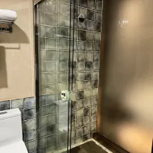 욕실과 화장실은 하나의 방이지만 샤워 실은 유리로 제대로 구분되어 있습니다.