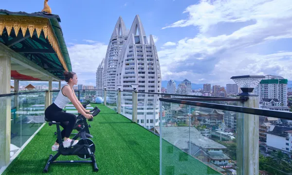 新裝修的酒店,裏面設施都很新,樓頂還有泳池和健身房。
