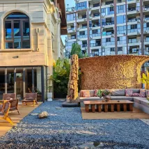주거 지역에 위치하고 있습니다. 전반적인 레이아웃은 매우 아늑합니다. 아래층에는 작은 정원이 있어 휴가 분위기를 느낄 수 있습니다. 헬스장, 수영장, 아이들이 놀 수 있는 공간도 있습니다. 추천할 만합니다.