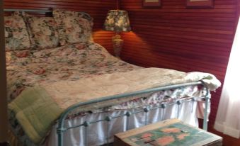 Lovingly restored by the great-granddaughter of the original owners, this unique historic cabin still retains many original details and decorations. Many visitors say they feel like they’re stepping back in time. There are lovely leaded glass windows, a handsome rustic stone fireplace, richly stained wood walls, beautifully faded oriental rugs and original china. There is a tidy new country kitchen with reclaimed porcelain sink, new gas stove, fridge, microwave, dishes and utensils.