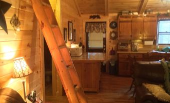 We have 2 bedrooms, ** AND A NEWLY ADDED LOFT!!!!**1 bathroom with newly installed bath tub, and an open living room with kitchen. Kitchen includes utensils, dishes and cookware. Come relax on our wrap around porch while swinging in our 2 porch swings. Enjoy the wildlife such as many birds, whitetail deer, wild turkey, squirrels and rabbits, which may be seen at any time.