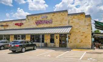 On the main floor, you'll find the kitchen with items like a KitchenAid mixer, Keurig, coffee maker, blender, crockpot, baking dishes, and the list goes on! The family room has a gas fireplace, Smart TV, and another sitting room off of the kitchen with access to the backyard and its own TV. The dining area comfortably sits 8 to gather around and play one of the provided games or enjoy a nice meal together. There is outdoor seating and a beautifully landscaped yard to enjoy- make some sweet tea and enjoy those beautiful Texas nights! There is also a washer and dryer and a half bath.