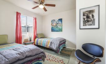Desert Air Zen is a modern, peaceful, restful space with all the comforts of home. This is one of two duplex units separated by two garages so there is plenty of privacy. Newly remodeled with all new appliances, polished concrete floors, modern concrete shower, comfy beds with all cotton sheets and plush carpet. You will be close enough to town to walk, yet it feels private and quiet. All diversity is welcome!