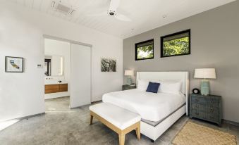 When it’s time to retreat indoors, the home offers the ultimate in comfort and convenience. Solid doors close to silence the ocean’s roar, creating a peaceful haven within. Every room features climate control, with a digital tablet allowing for one-touch customization of lighting, motorized shades, and entertainment settings for a truly personalized experience.