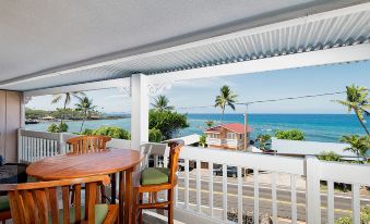Enjoy gorgeous sunsets in this updated 2 bedroom, 2 bathroom Kona condo. Kahalu'u Reef 301 is located right across the street from the ocean. Wake up to and go to sleep listening to the relaxing sound of waves crashing. The condo has ocean views from the kitchen, living room, and dining room. Take advantage of the new central AC system, updated and fully stocked kitchen, in-unit laundry room, flat screen TV in living room and master bedroom, and dining area on the on the ocean view lanai. Splash in pool and tan by the water, come relax on island time in Kahalu'u Reef 301!