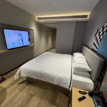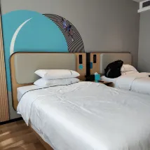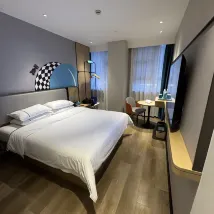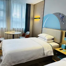 訂了4間雙床房分另在4、5、6樓,是一次非常滿意的入住體驗,地點方便對面馬路是東滙城,房間光猛設計貼心小桌和椅子方便在房間品嚐美食,USB叉電非常方便,冷氣非常好,智能助手“小度”很聰明~唯一小缺點就是6樓隔壁房間比較嘈,深夜聲浪更大,整體不錯退房時還了解了V l P會員的資訊,下次來還會選擇入住👍🏻