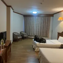 고전적인 숙박 시설, 좋은 홀, 매우 좋은 프런트 엔드 서비스. 웃는 얼굴로 세심한 서비스. 수영장이 매우 넓음. 객실이 좋음. 편안하게 잘 수 있음. 침대 좋음. 냉온수 시스템이 매우 좋음. 방이 넓고 불편함 없음. 욕조 있음. 일단 머물면 아무데도 가고 싶지 않습니다. 학교 앞에 7이 있으니 건너면 됩니다. 사판 코르가 도착했습니다. TV에는 태국 및 해외 채널이 모두 제공됩니다. 최고의 가치.
