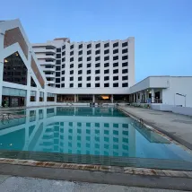호텔은 큰길가에 있어 멀리서도 잘 보이는 아주 좋은 위치에 있습니다. 하지만 건물이 너무 커서 조금 외롭고 으스스한 느낌이 듭니다. 직원과 투숙객은 많지 않지만, 세미나에 집중하는 것 같습니다.