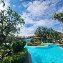 리조트 너무 예쁘고 엄청 컸어요 수영장 관리도 잘 되어있고 객실 또한 만족입니다 조식도 나쁘지 않았고 조식포함 가격 갓성비bb 또 이용할 의향 있습니다