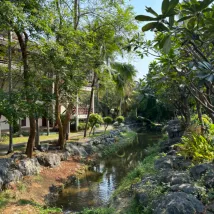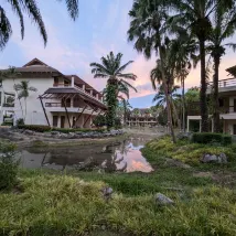 호텔 부지는 거대합니다. 경내 입구까지 데려다줄 골프 버기가 있으며 다리까지 도보로 단 100m 거리에 작은 시장과 레스토랑이 있습니다.