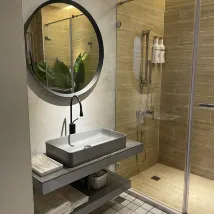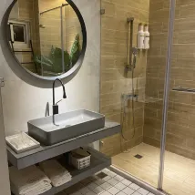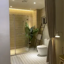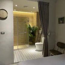 공간도 넓고, 디자인도 심플하고, 스트리밍 영상도 훌륭합니다. 슬리퍼는 일회용이 아니며, 3층에 정수기가 있습니다. 욕실은 커튼으로 방과 분리되어 있지만 문이 없어 전체적인 공간이 더욱 개방적입니다. 전반적인 숙박은 좋았습니다.