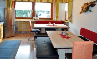 The apartment in Haus Miramonte is highly recommended for families and friends. It is located directly on the valley run, and the ski bus stops almost in front of the door. The furnishings/equipment of the rooms, bathrooms and kitchen are of high quality.