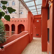 1층 중이층에 있는 안뜰은 에어컨이 설치된 객실과 야외 객실이 모두 공용으로 사용되었습니다.