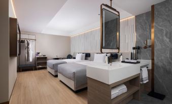 The hotel uses high-quality bathroom products that protect the environment. It uses a world-famous bedding brand for its large, comfortable mattresses. All rooms are equipped with a 50-inch smart TV, bringing you quality entertainment and allowing you to use your mobile phone for screen projection. A rainforest bath system and an intelligent toilet are just some of the amenities found in this hotel experience.