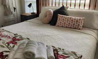 Overall, a good stay. Bed was comfortable. Couch was not. Air conditioning was very good on hot days. Plenty of room for a couple. T.V. and selections available were great. Coffee maker not so good (Very small). No dish towels that we could find. Communication was very good and fast. Location was very quiet and felt safe. Fan/lights with remote were awesome. I would recommend this place.