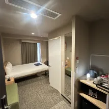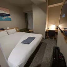 객실은 매우 새것이고 엘리베이터가 두 대 있습니다. 가와사키 역에서 멀지 않고 주요 도로에 편리하게 위치해 있습니다. 또한 길을 따라 식당을 위한 많은 상점과 쇼핑가가 있습니다. 여행 마지막 날에 좋은 곳이며 쇼핑가에서 쇼핑을 할 수도 있습니다. 객실카드를 한장만 주고 방이 너무 작아서 캐리어 두 개를 동시에 열 수 없었던 건 아쉽네요. 하지만 침대 아래 공간을 높여서 캐리어를 수평으로 놓을 수 있는 디자인은 좋은 아이디어입니다. 또한 GBC의 성지 순례에도 편리합니다.