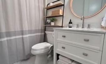 Prepare for pampering in our pristine, 2-bathroom suite. Each bathroom sparkles clean and is fully stocked, boasting bright lighting, expansive mirrors, and plush, hotel-grade towels. Step into the walk-in shower and tub combo, where you'll find shampoo, conditioner, and body wash readily available to cater to your group's every need.