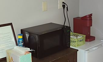 For your convenience, the unit is equipped with mini fridge, microwave, 2 mugs and Keurig coffee machine. While we strive to provide a variety of k-cups, we cannot guarantee availability to satisfy your taste. Please still plan to bring your own coffee.