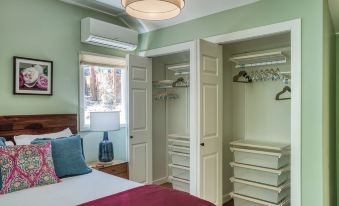 Blue Sky Cottage is one-of-a-kind. It is a lovely, serene cottage on a magical property in an incredible location. The cottage is large at 800 SF, and is freshly renovated head-to-toe. It has a new kitchen, large new bath and much more. Appliances, fixtures, linens, furnishings, cookware etc. are all top quality. The great room, with peaked ceilings, windows all around and skylights, is airy and filled with light. It is serene with soft blue walls and yummy colors, and opens onto a large deck. It has Roku TV with hundreds of channels for streaming, plus books and games. The cottage has its own dedicated network, and Wi-Fi speed is lightning-fast, 782 Mbps, sufficient for high-quality streaming on many devices at once. The kitchen is fully stocked with quality cookware and dishes and has everything you need to cook wonderful meals. Morning coffee is covered with a full coffee station, with Keurig, French press, electric kettle and all the fixings. A mini-split heating and AC system ensure your year-round comfort. The bathroom is newly renovated and just gorgeous, with a double-vanity and a tub enclosure lined with deep blue tile. The bedroom boasts a beautiful queen-sized solid acacia bed with premium Sealy Posturepedic mattress. It has large windows and lovely light, with shades. There is a very comfortable American Leather queen sleeper sofa in the living room. Linens and pillows are good quality throughout. We take sleep quality seriously here! Designed by the owner, an artist, the cottage sings with color - from the sky blue exterior to the sunshine yellow front door to the lively kitchen tiles. Overall the cottage is fresh, chic, peaceful with a cheerful vibe.