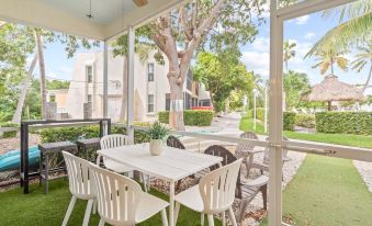We enjoyed our stay, and everything was clean and comfortable. However, potential renters should note that the two upstairs bedrooms share one small bath. There’s a second small bath downstairs - but no bedroom downstairs.There is also no dishwasher. The unit was comfortable but had a definite “worn” feel/look to it - not “new, luxury, modern,” as listed.However, with those qualifications, it is a great location for the Keys. Great restaurants nearby - and Publix is a quick drive away. I enjoyed setting up my easel on the screened in porch and painting while the guys were off fishing. The beautiful seaside spots in the listing are about a 5-minute walk away. Check-in was easy - and the host friendly and quick to respond.