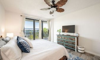 The primary suite is a private oasis featuring a king-size bed, en-suite bathroom with a huge jacuzzi tub and shower, a 43” smart TV, and generous closet space — perfect for unpacking and settling in. The guest bedroom offers two twin beds (convertible to a king upon request), a 43” smart TV, and ample storage. Both bedrooms open directly onto the balcony, inviting the outdoors in.