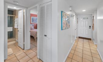 The primary bedroom offers a king bed and double windows looking out over the ocean and a fabulous walk in closet/dressing room. The spa-like primary bathroom has dual vanities and an oversized, glass-enclosed walk-in shower. This bedroom also has its own individual access to the private balcony, perfect for an early morning cup of coffee and a sunrise. The second bedroom has two twin beds and a large closet boasting lots of storage. The second bathroom is stylish with its modern glass and tile shower, full wall mirror and granite topped vanity.