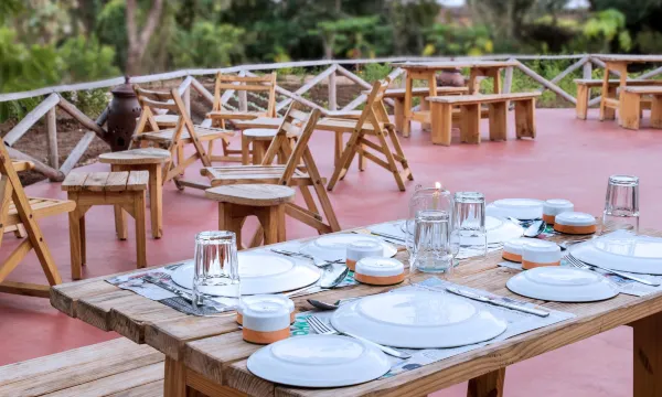Nice place, tucked away in a corner with little to no noise at night, wonderful for a good sleep in the middle of safaris. We had all meals included, & had a 5-6 rooms for a group of 11, we’d asked for customization of our menu as we wanted non-veg in every meal. This negotiation proved to be difficult initially, but eventually they agreed to all our requests. One touch that could be added is delivery of tea/coffee to the room for morning safari wakeup call, unfortunately this option wasn’t available & masala chai was only available at the restaurant in the morning. The showers, made out of bamboo are not good at all. The water has a flow where bits of water goes in every direction. A normal shower head is much netter. The safari breakfast definitely needs an improvement.