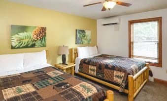 Boulderview Lodge accommodates up to 25 guests across three spacious levels. Our home features two primary suites with full baths, four double queen bedrooms, two single queen bedrooms, and a loft with a Twin daybed. The thoughtful layout balances privacy and connection, and is ideal for family reunions, business/work retreats, or group getaways.