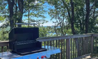 The raised, open-air deck is nestled amongst the trees and features a Weber-Genesis grill, picnic tables, and lounge seating, offering the perfect spot to unwind while immersed in the sights and sounds of the surrounding wildlife and forest canopy. Our lower front patio has several Adirondack seating and a private 6-person hot tub for lounging after a long day at the lake or exploring the local mountainscapes.