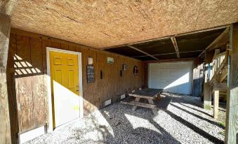 * Outdoor deck with dining area