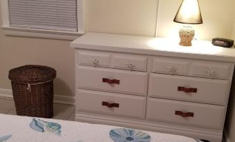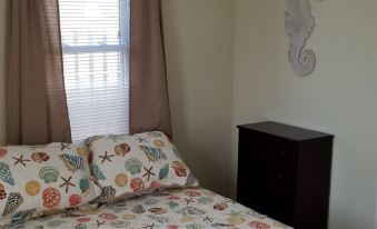 From the beach themed artwork on the walls to the starfish knobs on the dresser and nightstand in master bedroom, this quaint ONE LEVEL , two bedroom and one bathroom home will welcome you the minute you step through the door. There are queen beds in both bedrooms.