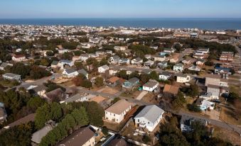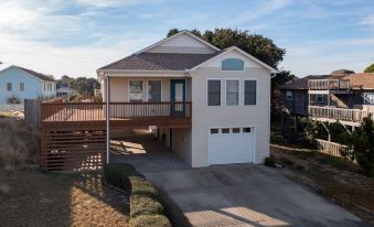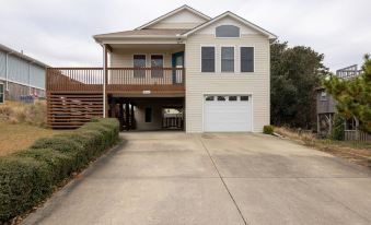 Located in the heart of Kill Devil Hills at MP 7 in the Sea Holly Ridge neighborhood! It's a short distance (0.3 of a mile) to the nearby shopping center that has Belk, Food Lion, and restaurants (Max's Italian Restaurant & Pizzeria, NY Bagels, and China King)! It's approximately 0.6 of a mile to the nearest beach access and 0.4 of a mile to the Bay Drive multi use path where you can walk or bike with views of the sound! The movie theater is a quick 3 minute drive and the Wright Brothers National Memorial is approximately a 5 minute drive away! The property offers four bedrooms (1 King, 2 Queens, and 2 Twins) and two of those are primary bedrooms (one upstairs and one downstairs) with full bathrooms! The third bathroom is located in the hallway on the second floor. The living space is open concept with enough seating for the whole family! There's plenty of space under the home for relaxing or you can soak up the sun on the spacious deck! There's enough parking for up to 5 vehicles (4 in the driveway and 1 under the home). Out back, you will find a charcoal grill, outdoor shower, and a fully fenced in backyard! NOTE: SHEETS AND TOWELS ARE NOT PROVIDED; PLEASE PLAN ACCORDINGLY.