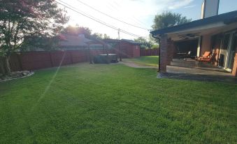 Features 3 bedrooms, 2 bathrooms, long covered back porch, with a hot tub located in the back yard. . Also have plenty parking space with a wrap around garage. This house easily accommodates 6 adult guest and 3 cars It’s in a prime location in the city with plenty eateries, shopping and other businesses just minutes away.About pets:No pets allowed.About checkOut:Check out before 11:00 AM.About children:Children allowed: ages 0-17.About checkIn:Check in after 4:00 PM.About smoking:Smoking is not permitted.About events:Events allowed: family gatherings.Maximum event attendees: 10.