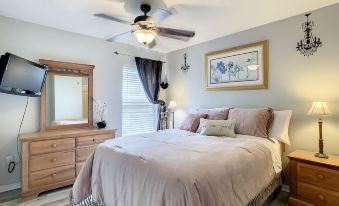 This house was great! Every room of the house was very homey and comfortable. The pool and hot tub are a great addition! The hot tub for the cool mornings and nights and the pool during the day. Its location was nice! Away from all the hustle and bustle of the area. But still close enough to venture out. We enjoyed staying at this property. We took a walk every morning around the lake behind the house. My boys fished off the dock and caught some fish (catch and release). All the ducks, cranes, etc. were so fun to watch. It was a very enjoyable place especially if it's a leisure vacation as well. We would definitely stay here again!