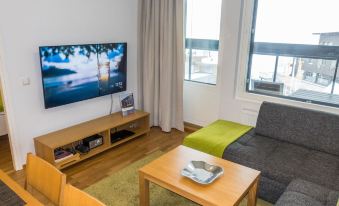The airport is 14 km away (airport bus directly to the apartments, travel time 15 minutes).