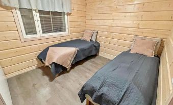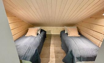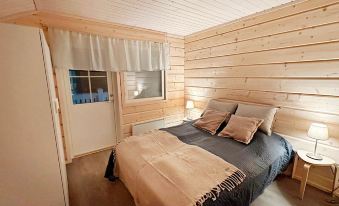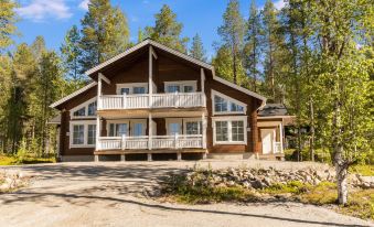 A two-storey semi-detached log cabin built in 2018 in the new Levi South point area. The apartment is a perfect fit for families with children, couples or a group of friends alike. Situated in the woods besides the southern slopes, it is undisturbed by the noise of Levi center but still easily accessible being only a 10-minute car drive away from Kittilä airport and 7 minutes from Levi center. Ski bus service leaves every 30 minutes during the winter season and conveniently takes you to the closest grocery store or to the heart of Levi centre.