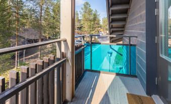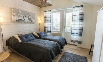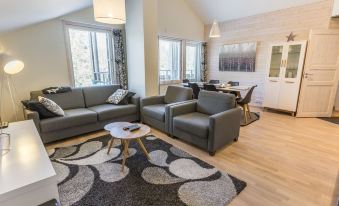 A beautiful lost-style apartment in the heart of Levi. All services of Levi from ski slopes and cross-country skiing tracks to outdoor trails and shops, cafes and restaurants are within walking distance. No need for your own car while staying in Levin Stara. The light and spacious apartment has two balconies so there is possibility to enjoy the rays on sunshine around the clock. The apartment can be connected with the neighbour apartment Levin Stara A09 (15285) which allows a bigger group to enjoy their holiday together. The apartment has two bedrooms with two beds each. The bright living room also has a fold-out couch. Kitchenette brings more living space and big dining table enables the whole group to dine together. Stylish sauna, bathroom and toilet are combined in one space. The apartment is well equipped including two Smart-TVs, DVD/Blueray, home theater with bluetooth and free Wifi.