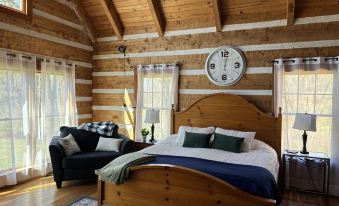 Welcome to The Weston House. Your perfect getaway awaits. Come escape to this spacious and serene place, where history and luxury unite. This peaceful log cabin offers an impressive list of amenities for your comfort and enjoyment. Explore the five-acre property featuring a charming pond, surrounded by nature. Indulge your culinary skills in the fully equipped kitchen, crafting gourmet meals for your loved ones. Rediscover the joy of play and feel like a kid again in our game room playing pool, Foosball and shuffleboard – a delightful escape for all ages. As the day winds down, surrender to relaxation in the luxurious hot tub or cozy up to the fire pit, under the star lit sky. The possibilities are endless, ensuring an unforgettable experience for everyone.