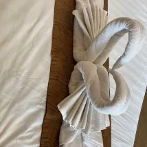 훌륭한 호텔입니다. 나바안 부두에서 도보로 5분 거리에 있습니다. 하루 300바트로 자전거도 빌릴 수 있었습니다. 아침 식사는 단품으로 제공됩니다. 모든 메뉴가 충분합니다. 근처에 7/11 매장이 두 군데 있습니다. 두 곳 모두 걸어서 갈 수 있는 거리에 있습니다. 카페에 갈 준비가 안 됐다면 저렴한 가격으로 식사를 즐길 수 있는 작은 야시장도 있습니다. 매일 청소, 샴푸, 젤, 비누, 면봉 등 모든 것이 매일 제공되며, 수건은 매일 교체됩니다. 보증금이 전혀 없어요 - 이게 무슨 숫자야, 이게 무슨 자전거야 ❤️❤️❤️