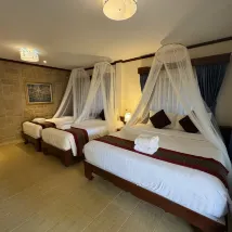 ❗️본관 2층 건물의 일부 연결 객실은 방음 처리가 되어 있지 않으므로 호텔에서 방갈로(독립형 객실)를 예약하는 것을 추천합니다. 2층에 있는 저희 방에서는 옆방 욕실이 침대 옆 벽 뒤에 있었습니다. 수도꼭지에서 물이 흐르는 소리가 마치 [샤워기/벼룩/샤워기] 소리가 나는 것처럼 들렸습니다.