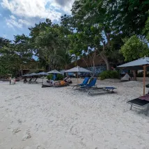 깨끗하고 조용한 리조트입니다. 이번에는 해변 바로 옆 코티지에 묵었습니다. 음료를 주문하고 해변가에 앉아 휴식을 취할 수 있어 매우 편안했습니다. SUP 보트도 이용 가능하고, 직원들도 매우 친절했습니다. 도로 왼쪽에 택시 승강장이 있고, 스쿠터도 빌릴 수 있어 매우 편리했습니다. 해변도 매우 조용했습니다. 호텔 투숙객 외에는 다른 관광객이 거의 없었습니다.