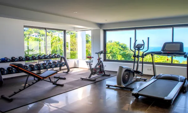 For wellness and entertainment, the villa offers a fitness room, gym, and boxing area.