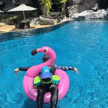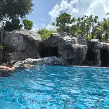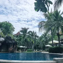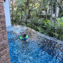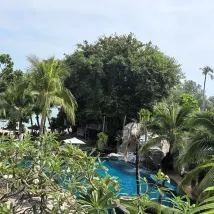 아침 식사는 맛있었습니다. 우리는 수영장이 있는 방에 묵었습니다. 아마도 녹색 식물 때문인지 객실 수영장 물은 공공 수영장 물만큼 깨끗하지 않았고, 공공 수영장 물보다 약간 차가웠습니다.