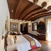 호텔은 넓은 객실 공간을 갖춘 태국 스타일의 빌라입니다. 살기에 정말 편안해요! 욕조, 샤워 시설, 크고 편안한 침대가 있어요!