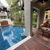 아마도 태국 스타일 때문인지 그다지 새롭지 않은 느낌이 듭니다. 우리는 두 가지 유형의 객실을 예약했는데, 그 중 하나는 수영장이 있는 객실이었습니다. 하지만 나중에 공공 수영장이 괜찮다는 걸 알게 되었고, 객실에 수영장이 따로 필요하지 않았습니다.