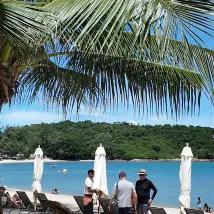 호텔 뒤에는 해변이 있습니다. 많은 외국인들이 이곳에서 일광욕을 즐기고 있습니다. 정말 시원해요!
