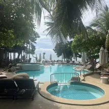 The hotel has a private beach, a swimming pool, the location is great, there are a lot of restaurants and massage places near the restaurant. Lamai night market also is a walking distance. The restaurant by the beach is great, we enjoyed the breakfast by the sea, the prices at the restaurant are a bit pricey but having a coconut juice by the beach is worth it. The amenities overall were good, 4 stars for cleanness because the air con was dirty inside out. The dust was visible on the top of AC and the air wasn’t fresh.