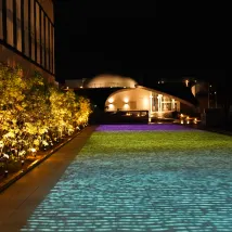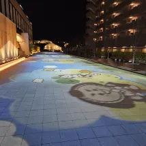 밤이 되면 호텔 앞에서 프로젝션 매핑을 하고 있어, 아이들이 취직 즐거울 것 같았습니다.